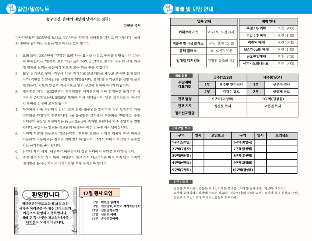 송구영신, 올해와 내년에 달라지는 것들! --- 고현권 목사