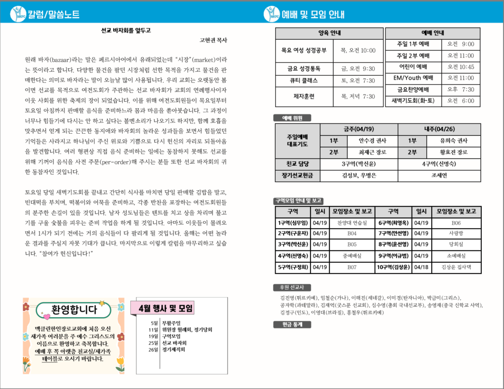 선교 바자회를 앞두고--- 고현권 목사